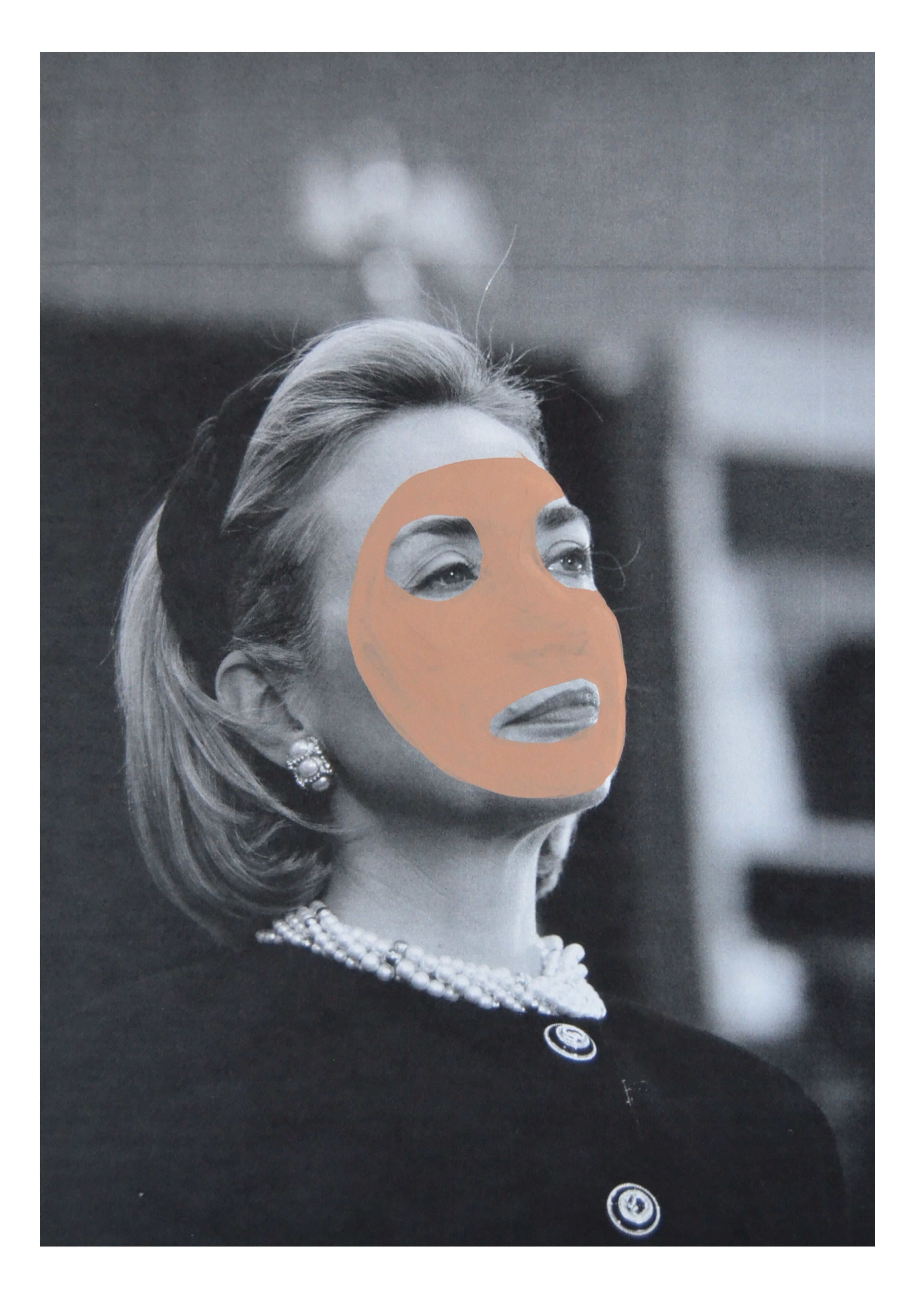 Las impresiones digitales que se exponen aportan un vínculo más directo con la historia de Mónica. Son una serie de retratos, una colección de los rostros protagonistas de esta historia enmascarados con una base de maquillaje, elemento muy relacionado con la feminidad entendida dentro de este contexto social. Así se crea una especia de situación de curiosidad sobre los rostros expuestos y quizás un afán de búsqueda posterior.